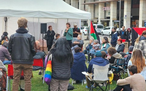 “Cuneo per Gaza” in piazza Europa, il presidio continua: “Restiamo finché non finirà il massacro”